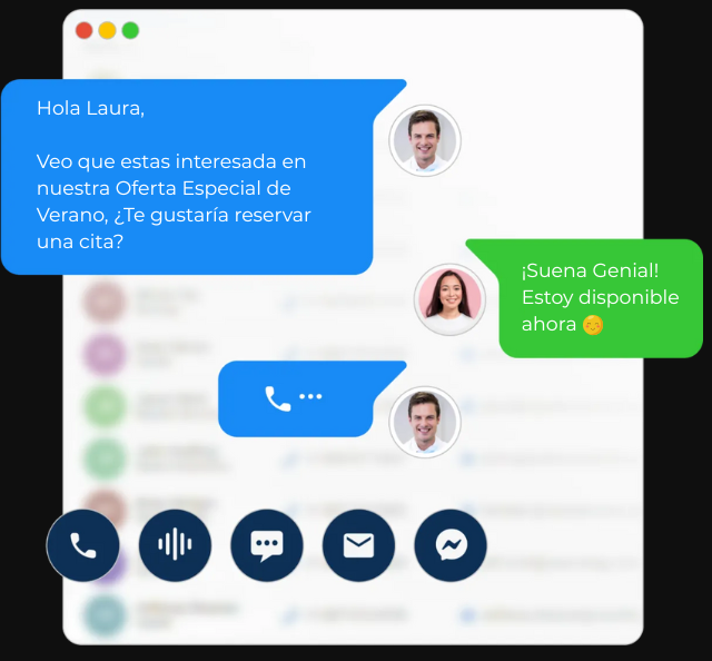 Comunicación bidireccional en cualquier dispositivo. Nuestra completa aplicación móvil te permite comunicarte con tus leads en cualquier dispositivo.