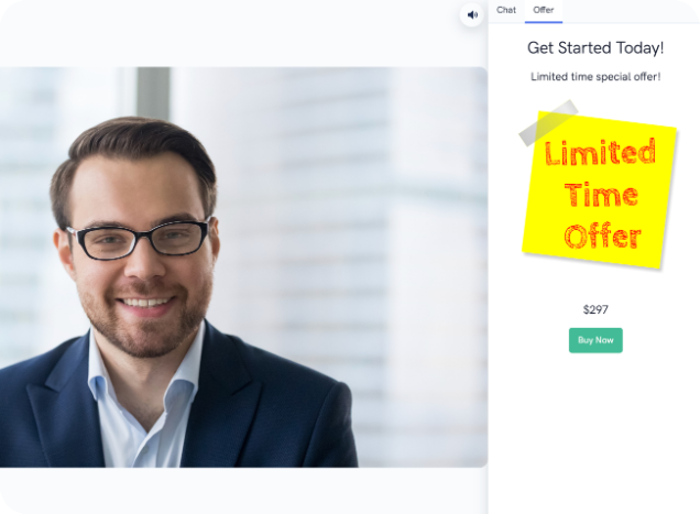 Vende más ofertas directamente en tus seminarios web → Las llamadas a la acción impulsadas por IA aparecen en los momentos adecuados, lo que aumenta las conversiones y garantiza que los asistentes nunca pierdan una oferta.