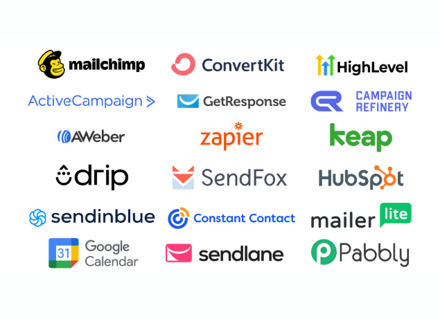 Integración con docenas de CRM de marketing y Zapier y Pabbly para acceder a la integración con decenas de miles de otras aplicaciones