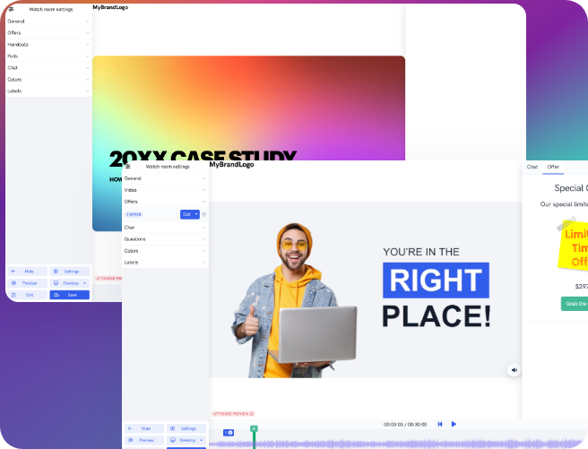 Nuestras herramientas profesionales están diseñadas para maximizar las conversiones, la participación y los ingresos, de modo que cada seminario web automatizado genere resultados reales.